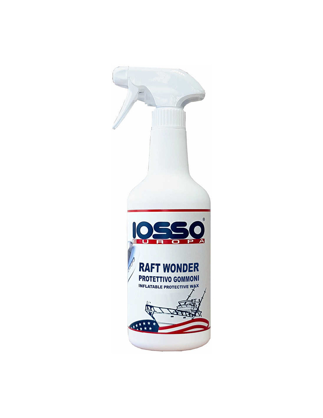 IOSSO Raft Wonder è una cera protettiva specificamente formulata per la manutenzione ordinaria di gommoni e superfici sintetiche (come cuscineria e parabordi), che ravviva i materiali e li protegge dagli agenti atmosferici.